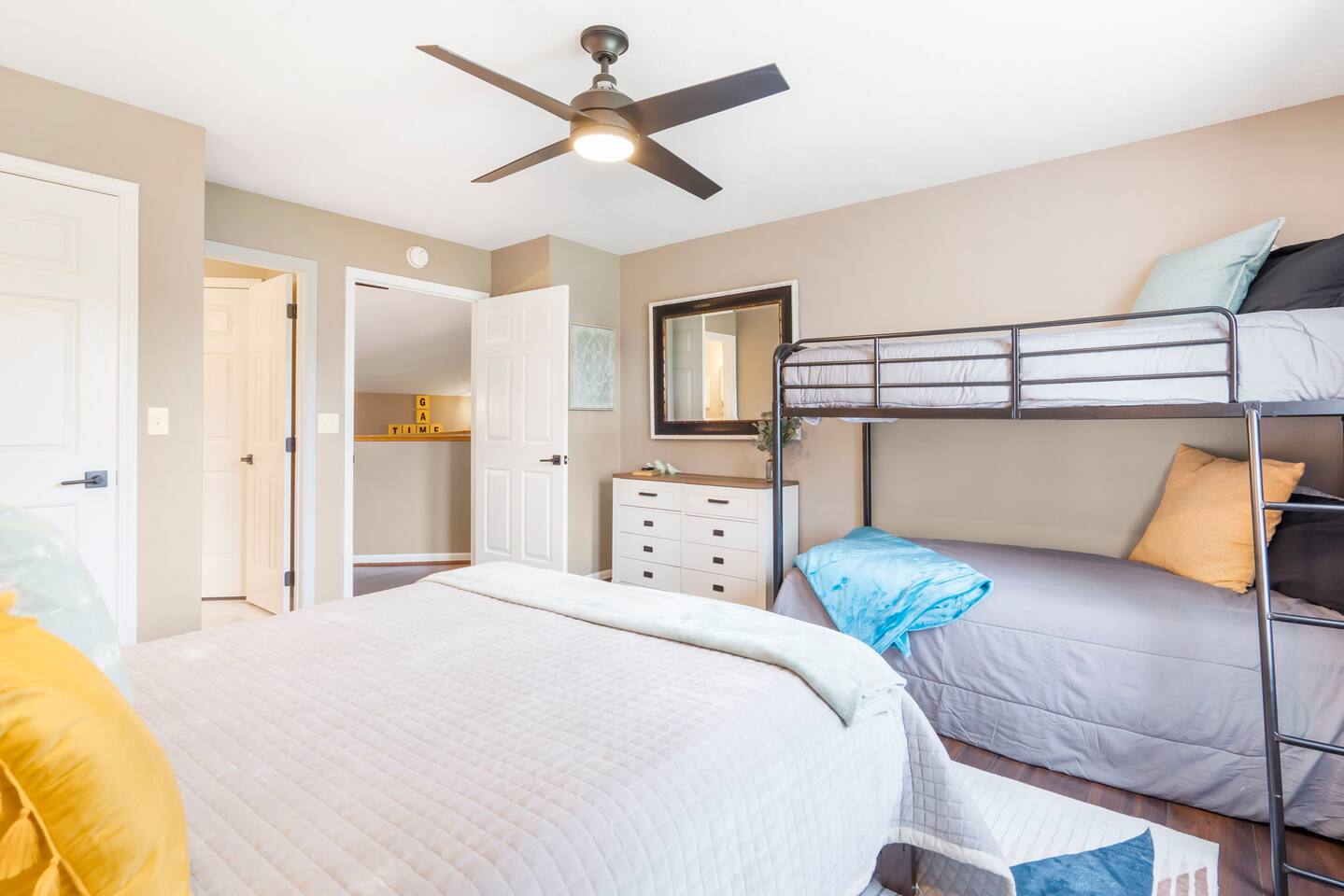 AfterDune Delight by Change Your Latitude Properties truly offers a fantastic array of amenities for a fun-filled getaway! The property is located in the highly sought-after, amenity packed Pointe Royale Resort Community. 📌 Nearby Attractions: Enjoy a quick trip to historic Downtown Branson for unique shopping and dining experiences. The close proximity to Lake Taney Como provides access to marinas, boat ramps, and a local man-made beach. Condo is the end unit on the 2nd floor of a three story building. Requires a flight of stairs to enter. Total occupancy is 12 people including infants under 2 per licensing regulations in the state of MO and the city of Branson. *Sleeping Areas: Main Floor - King Primary and King secondary rooms. Upper level - Queen room with single bunks. Loft - 2 queen beds. *Kitchen FULLY Stocked -Hot and Cold Coffee maker pot and Keurig style -Two crock pots. -Air Fryer -Kids dishes and utensils Infant Supports -Pack n Play with attachable changing station -Baby bath seat -High Chair -Sway Swing 🔗 Additional Information: Golfing includes a stay and play package discount. Communal outdoor pools are seasonal (Memorial Day to Labor Day). ❗ Important Details: A rental agreement must be signed within 48 hours of booking. Minimum age to rent is 24 per HOA. 📷 Security: A Ring camera is located at the entrance for monitoring compliance with house rules. 🐶 Pets are limited to 1 dog 50lbs or under. Please see other things to note section for additional information regarding bringing a pet.