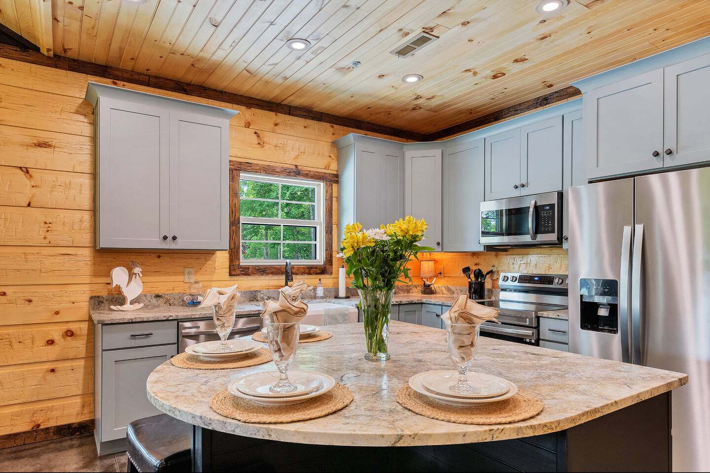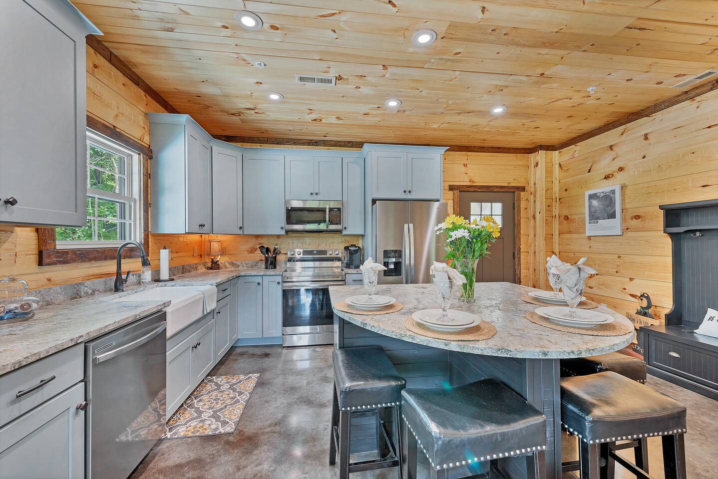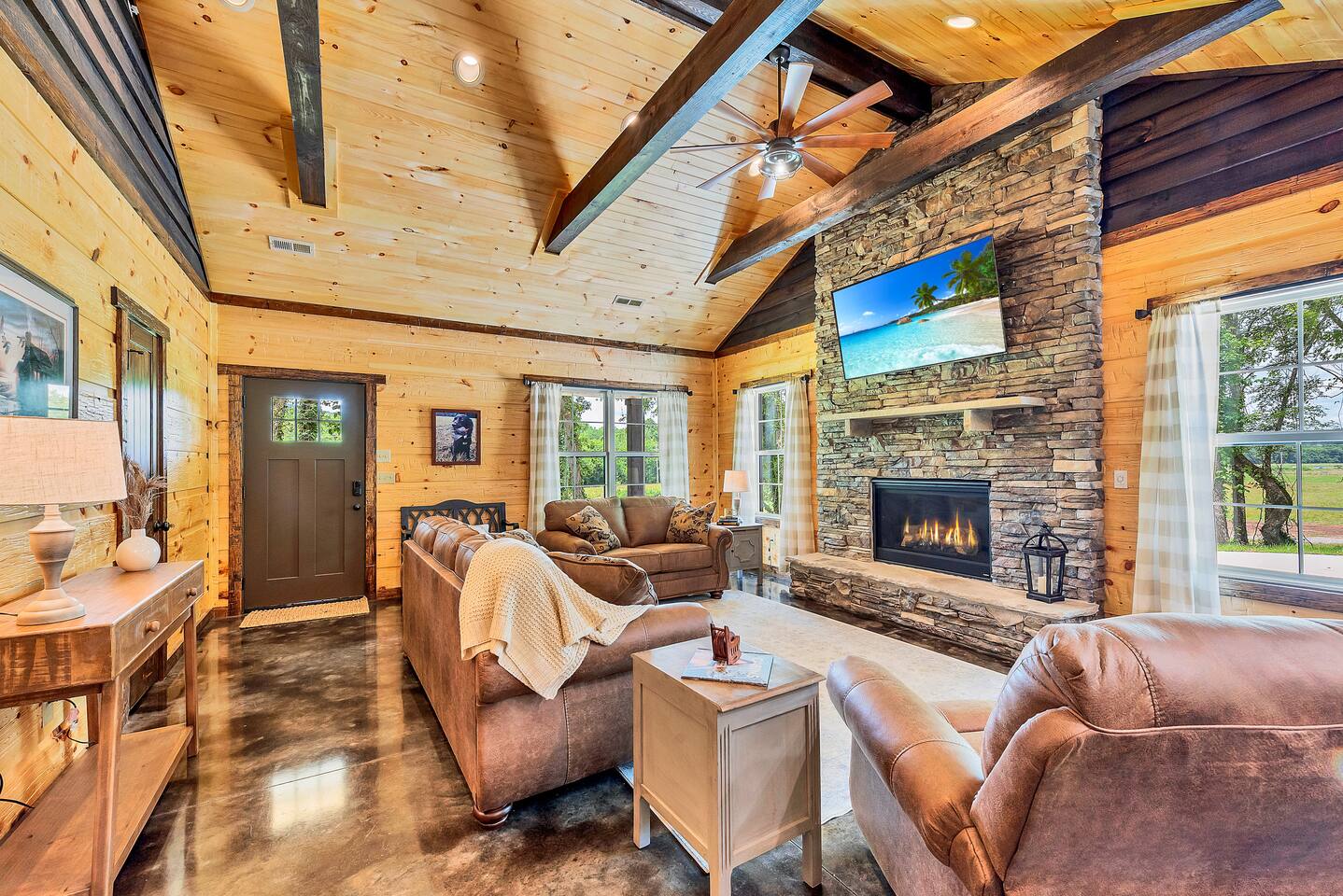 Nestled on 10 private acres near the Little River, this cabin offers the perfect blend of seclusion and serenity. Stroll down the private’s gated driveway to your private riverside patio with dining space, cozy seating, and a safe river entry for swimming, tubing, kayaking, or casting a line. This peaceful setting is surrounded by tranquil nature yet conveniently close to local gems—enjoy nearby restaurants, charming bars, and all the beauty of the Smoky Mountains. Cades Cove, one of the park’s most scenic areas, is just 15 minutes away.