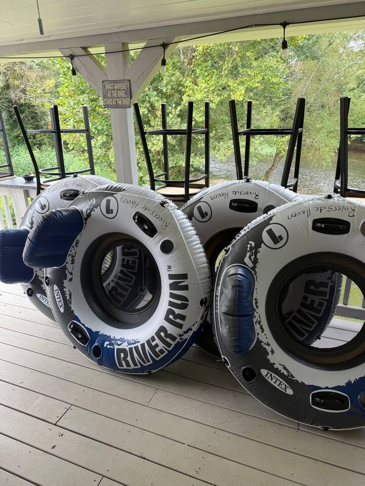 Welcome to your peaceful river retreat. Planning a family adventure or a romantic escape? This riverside cabin is the perfect setting. Spend your days floating on the river in one of our tubes, fishing, take a kayaking tour or hiking the scenic trails of Great Smoky Mountains National Park. After a day of adventure, come back and unwind — challenge your crew to a game of corn hole or axe throwing, gather around the fire pit under the stars, or soak in the private hot tub. Tranquility, comfort, and connection all await at Riverside Haven. Longer stay discounts provided for 3 or more nights. Discount rates increase with amount of days reserved. Swimming area (In the river, There is an area that is about 4’ deep great for swimming! It has a current but not going to sweep you away. If we get rain, it will be deeper but a little more current. It is a gentle, gradual beach type entry. 4 Tubes provided for fun on the water. *Entertainment 💦Relaxing hot tub 🪓Axe Throwing 🏍Bring your motorcycle and ride the Tail of the Dragon 🍔Propane & charcoal grill for the masters 🔥Fire pit for s'more family time 🌲Riverfront ambiance 🍩Tubing or Swimming - Tubes provided 🐟Great smallmouth and trout fishing 🛶Kayaking and tubing down the river (tubes and kayak rentals nearby) ❤️🔥Relax around the indoor fireplace 📺TV's in each room *Sleeping Areas Master Bedroom - King bed, TV, bathroom access, private deck access and river views! Single over queen bunk in the living room. *Comfort Heating and air conditioning. Livingroom fireplace *Kitchen Fully stocked kitchen for all your meals. Keurig available Convenience: Here’s a list of goodies you can expect to get you started. ⭐️2 to 3 rolls of TP in each bathroom ⭐️2 rolls of paper towels ⭐️3-5 trash bags ⭐️Several dishwasher pods ⭐️Caffeine 🤪 k-cups These are intended to get you started on the right foot and may not last your entire stay, especially longer stays. Bath/Laundry Washer and Dryer on site - Washer self dispenses detergent - hence none in the starter kit. Please carefully review the house rules prior to booking to ensure this listing is the right fit for your group.