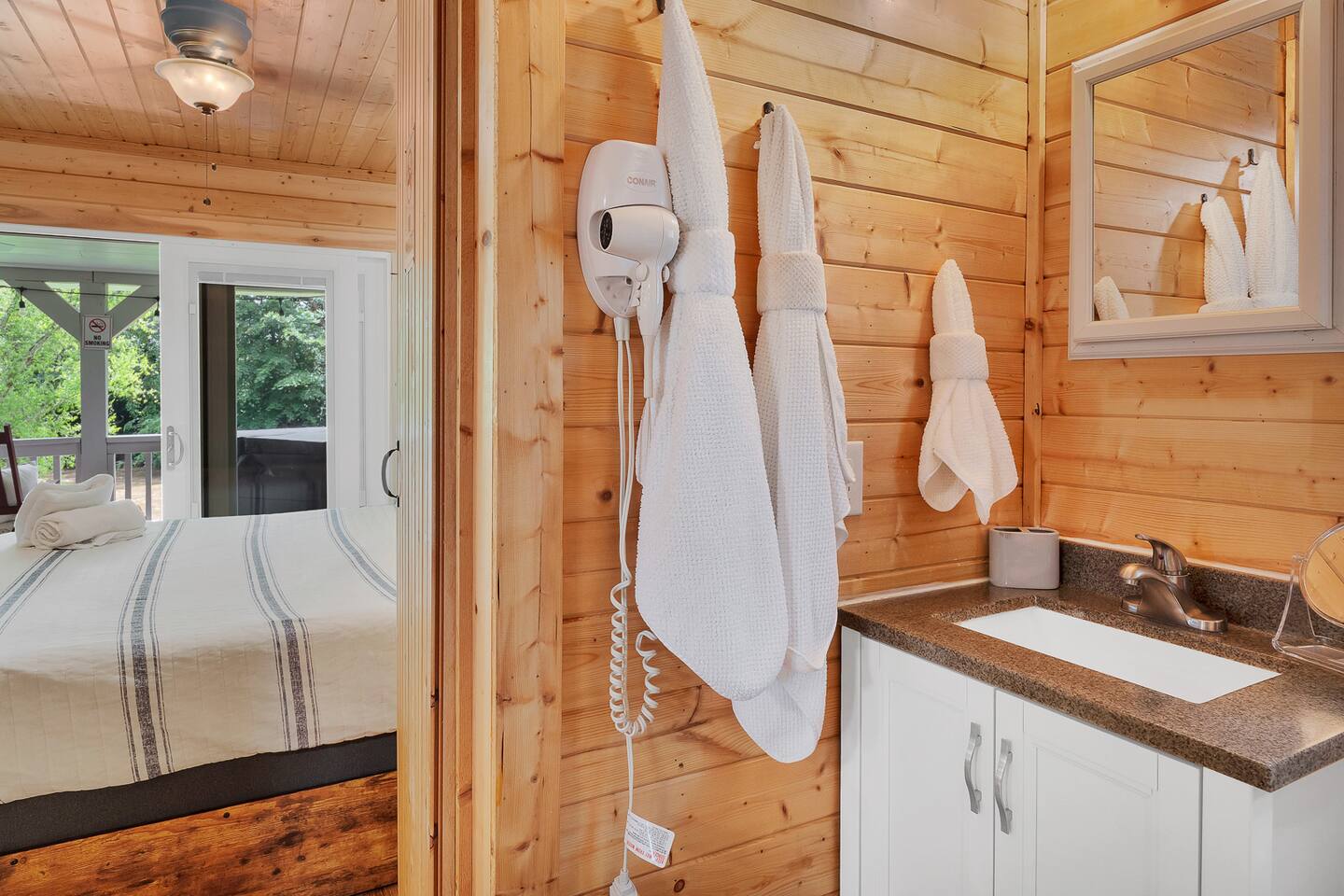 ✔️Signed Rental Agreement is required 48 hours after making your reservation to confirm you booking. ✔️ Must be 23 to book this cabin ✔️ We are not responsible for any items left behind. ✔️ We highly, HIGHLY recommend you purchase travelers insurance. Refunds not provided for weather/travel/health/family related incidents. Travelers insurance will cover these things. The host is not travelers insurance. Please purchase insurance, it's cheaper than you stay. 🙂 ✔️ Any other services or experiences booked through Airbnb are in no way, shape or form affiliated with our property. Experiences and other services may not be included in the review of this property. ✔️ Guest Concerns & Resolution Policy If any issues come up during your stay, please message us via Airbnb within 24 hours of noticing the issue and before you check out. This gives us the chance to fix it promptly. We’re committed to a great experience and can’t consider refund requests after departure if we weren’t given the opportunity to help during your stay. ✔️Wildlife & Insects – Important Info Our cabin is surrounded by nature, which means occasional wildlife or insects are part of the mountain experience. Bears live in the area. Never feed them or leave food outside or in your vehicle. Keep car doors locked and store all food securely indoors. Wildlife sightings may happen — they are not cause for concern or refund. We have regular pest control, but bugs may still appear due to the wooded location. This is normal and not refundable. Thanks for respecting the natural environment that makes this place special! ✔️We use a camera to patrol the entry area of our cabin. This camera is activated by motion and records anyone who walk in front of it. If we believe the house rules are being violated, we have the ability to access this camera in real time.