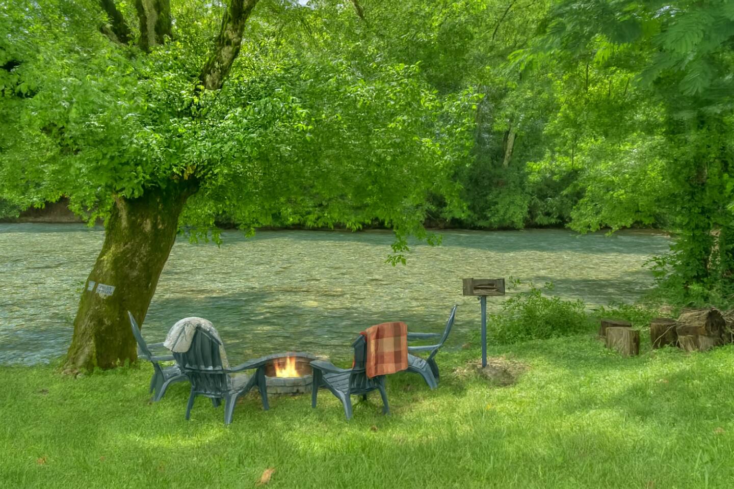 Nestled directly on the banks of the Little River, this cabin offers the perfect blend of river life and comfort. Step outside to your private riverside patio with dining space, cozy seating, a hot tub and a safe river entry for swimming, tubing, kayaking, or casting a line. Enjoy a riverside fire in this peaceful setting surrounded by tranquil nature yet conveniently close to local gems—enjoy nearby restaurants, charming bars, and all the beauty of the Smoky Mountains. Cades Cove, one of the park’s most scenic areas, is just 15 minutes away.